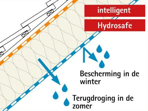 Dit beschermt de bouwschil tegen vocht- en schimmelschade en zorgt ervoor dat het isolatiemateriaal optimaal presteert. In de winter wordt dus voorkomen dat vocht het dak en de muren binnendringt. In de zomer voert een klimaatfolie zoals de Pro Clima Intello uitzonderlijk veel vocht af uit de constructie omdat deze kan terugdrogen naar binnen toe. Hierdoor wordt ongewenst vocht voortdurend uit de isolatie verwijderd, wat schimmelvorming voorkomt.
