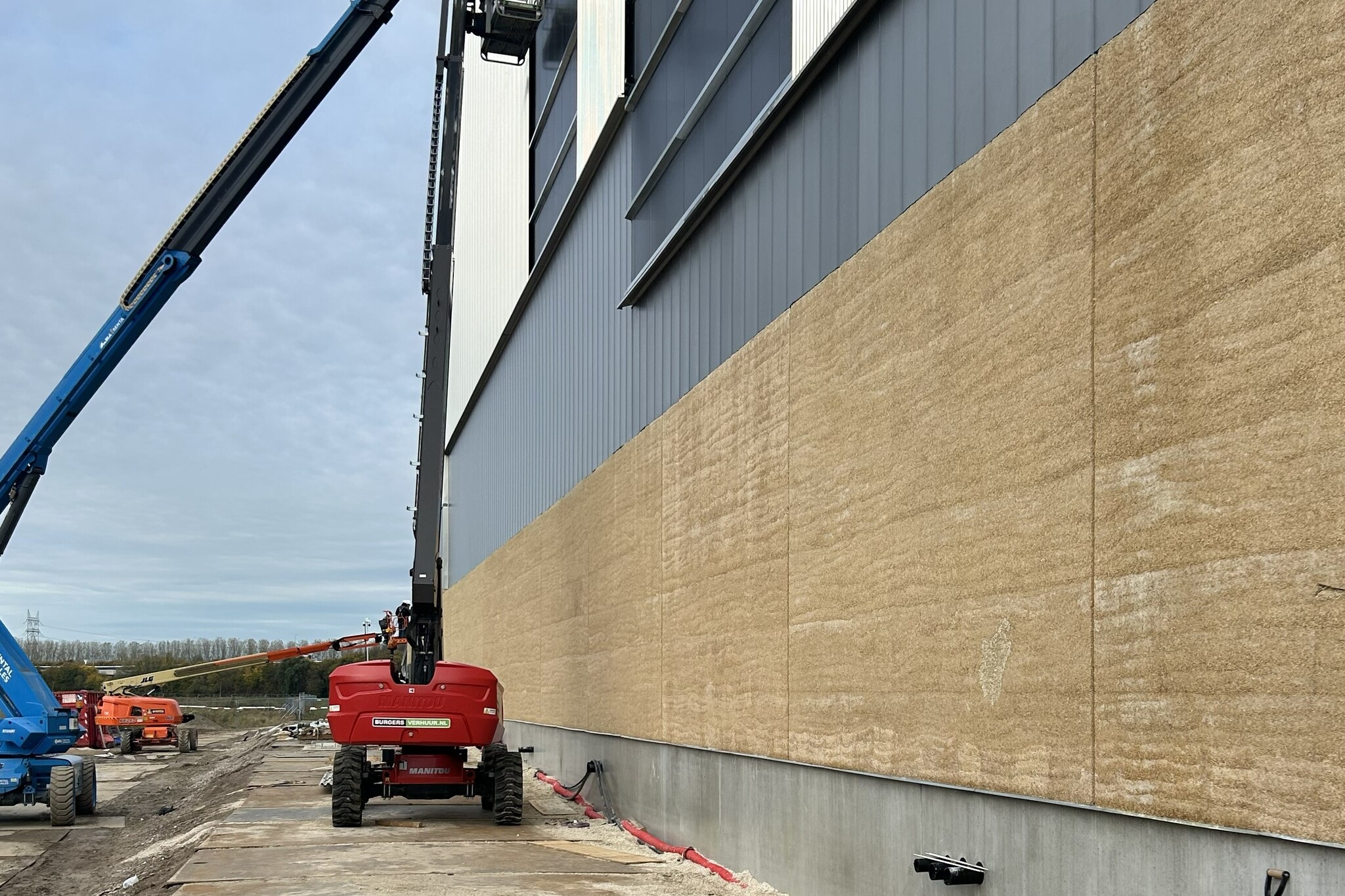 Exie levert de kalkhennep voor dit project. Maarten: “We hebben hele leuke banden met de eigenaar van het bedrijf. Ze mixen de kalkhennep al voor ons en leveren het op locatie. Dat scheelt arbeid en tijd.” Voor de schaal van dit project is dat ideaal.