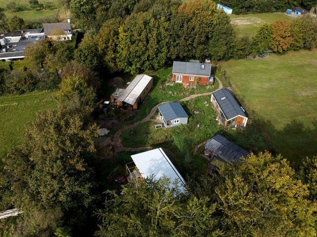 Naast de woningen is er een voedselbos ontwikkeld op grond van de buren. Een jungle in spé met zowel inheemse als uitheemse bomen en planten. Geen moestuin met rechte rijtjes en focus op productie, maar een permacultuurgebied dat natuur versterkt en mensen verbindt. Het bos kent negen lagen met pionierbomen, fruit- en notensoorten en eetbare planten. Productie is niet het doel; belangrijker is dat het ecosysteem elk jaar sterker wordt en een natuurlijke plek vormt voor bewoners en bezoekers.