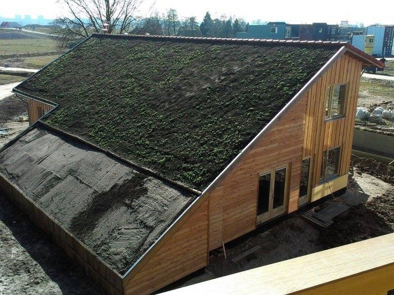 De muren van stro zijn aan de binnenzijde afgewerkt met leem. De buitenkant van het gebouw is voorzien van onbehandeld FSC-gecertificeerd hout. De vloeren tussen de verdiepingen zijn van hout met een cementen dekvloer. De kozijnen zijn van accoya-hout, dat door een verzuringsproces onbehandeld kan blijven. Voor de woningscheidende muren is kalkzandsteen gebruikt en er is overal gekozen voor ecologische verf. Waar beton onvermijdelijk was, is gekozen voor groen beton, deels gemaakt van gerecycled beton.
