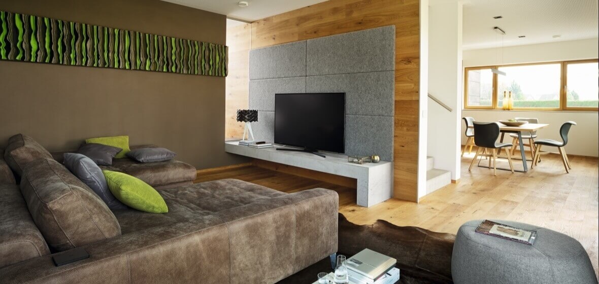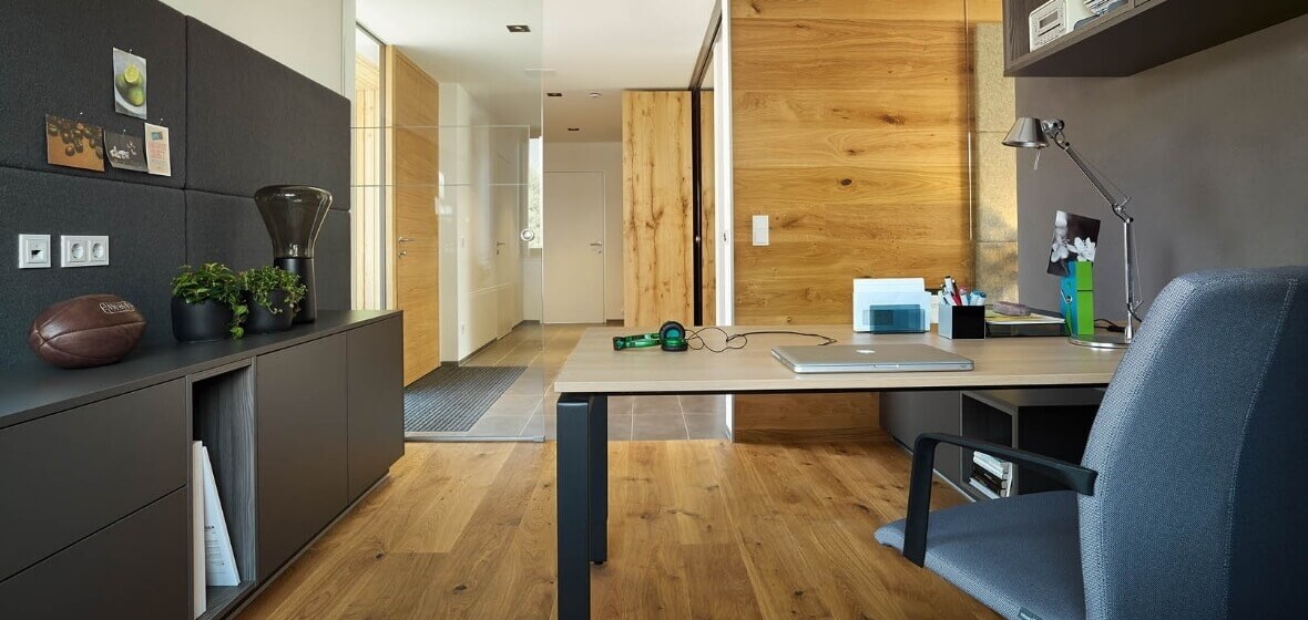 Het hart van deze woning wordt gevormd door geprefabriceerde bouwelementen van kleikorrels met uitstekende eigenschappen voor akoestiek, brandwerendheid en een aangenaam binnenklimaat. Om de isolatie en leefkwaliteit verder te verbeteren, is gekozen voor schapenwol als aanvulling op de kleikorrels. Deze combinatie zorgt voor een natuurlijke balans: warm in de winter, koel in de zomer. Daarnaast is in de woning gebruikgemaakt van Silentum akoestische panelen in verschillende ruimtes, zoals de kantoor-, woon- en eetkamer. De panelen optimaliseren de omgevingsgeluiden en dragen bij aan een warme, comfortabele sfeer. In het plafond van de woonkamer is Isolena Optimal Plus-isolatie verwerkt, eveneens op basis van schapenwol.
