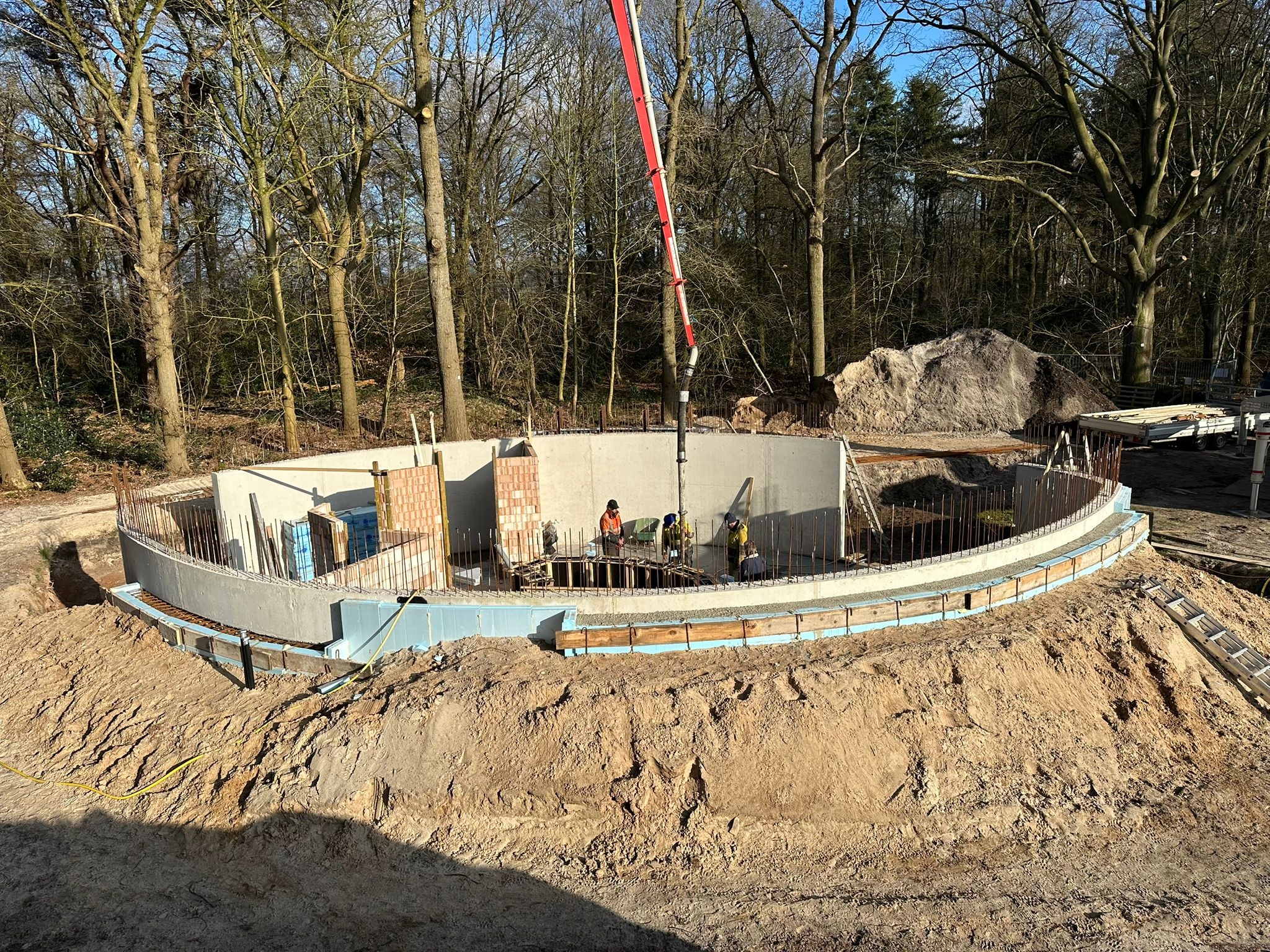 Er wordt hard gewerkt aan de ronde Villa van Seventer. Geïnspireerd door de omgeving, heeft Huub van Laarhoven de woning in de vorm van een beukenblad ontworpen. De woning staat zowel door het ontwerp, de locatie en de materialen in contact met de natuur.