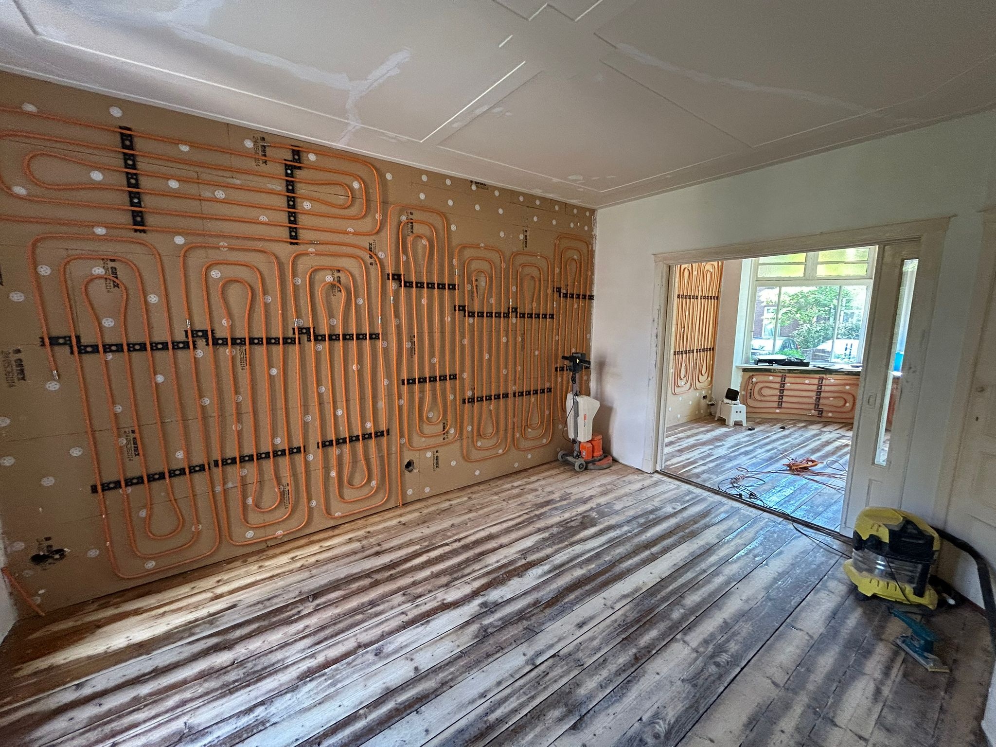 De verbouwing levert nu al leuke reacties op. Aan de voorkant van de woning zit een ruime erker. Buurtbewoners die langslopen, gluren regelmatig even naar binnen. “Dan zien ze de buizen van de wandverwarming hangen en raken we aan de praat. We krijgen dan de vraag of we vloerverwarming aan de muur hebben. Wandverwarming is nog onbekend bij veel mensen, maar wij vinden het een ideale oplossing.”